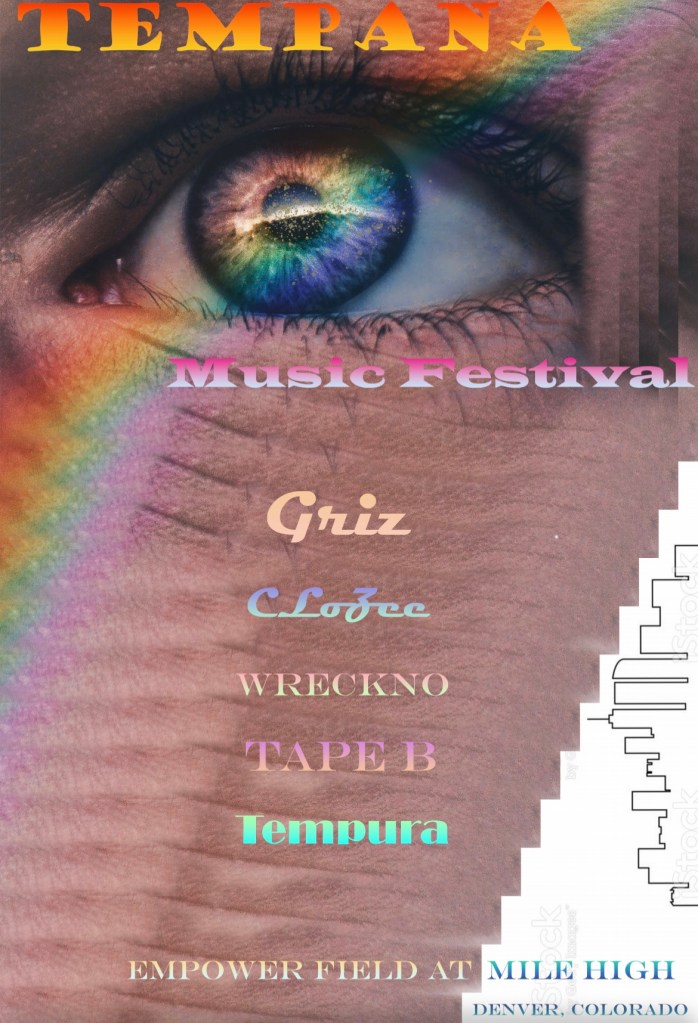I also edited a concert poster in Adobe Photoshop to practice the elements and principles of design in order to create informational content for the eye. My goal was to make an engaging and colorful flier to promote a music festival and gain an audience. Here, I showcase my graphic design skills from scratch.